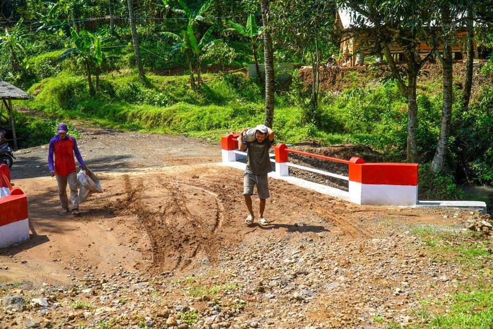 “Dulu kalau bawa hasil panen cukup sulit, apalagi saat hujan. Sekarang alhamdulillah lebih mudah dan cepat,” ungkap Warlan (53) salah satu warga yang melintasi jembatan Armco.