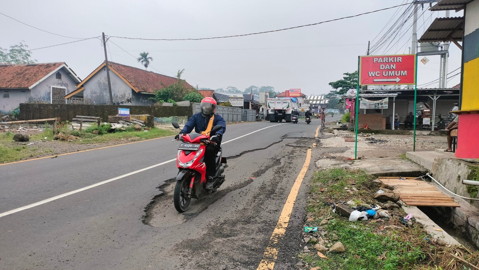 Lebih lanjut kata Rudi, kondisi jalan yang rusak kembali memicu terjadinya kecelakaaan lalu lintas meski tidak memakan korban jiwa. Tiga pengendara motor sempat terjatuh saat berusaha hindari lubang atau kerusakan jalan akibat aspalnya terkeplupas.