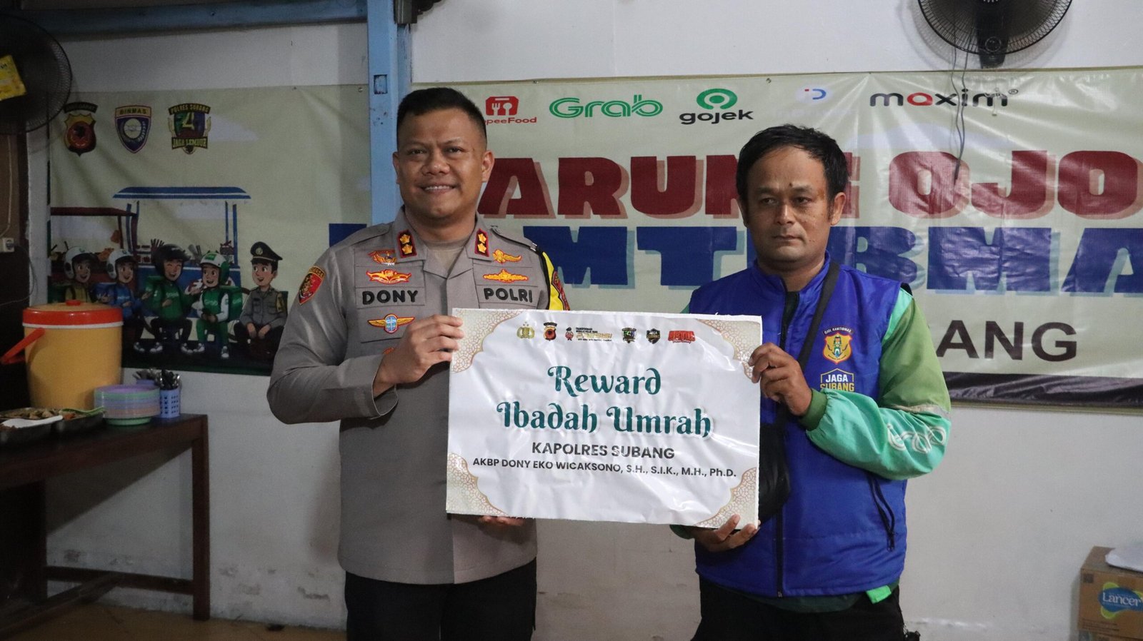 Momentum kebersamaan ini semakin istimewa dengan pemberian reward berupa pemberangkatan Ibadah Umrah oleh Kapolres Subang AKBP Dony Eko Wicaksono, kepada salah satu anggota Ojol Kamtibmas Polres Subang, Saudara Gugun Gunawan.